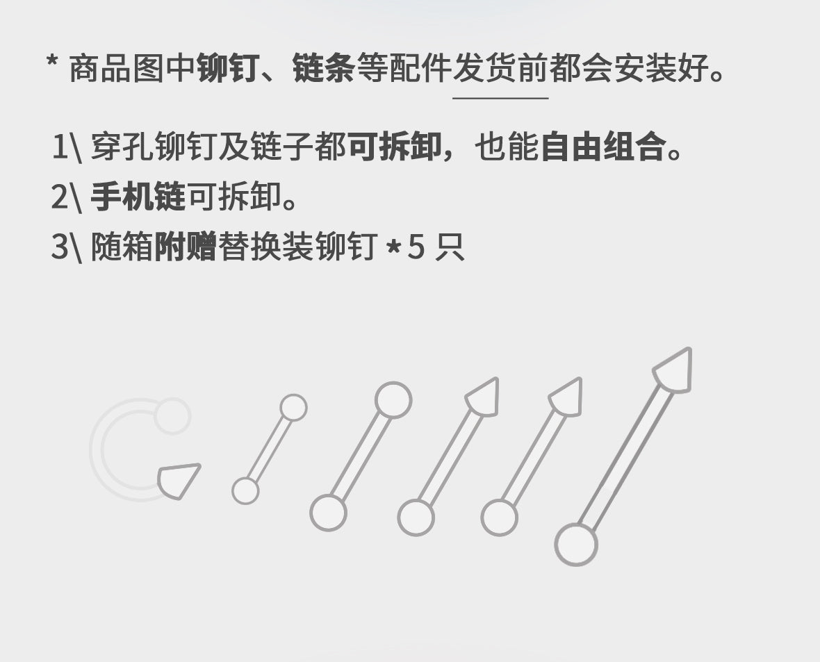 Come with a case for a 3-inch card and a refill of rivets.